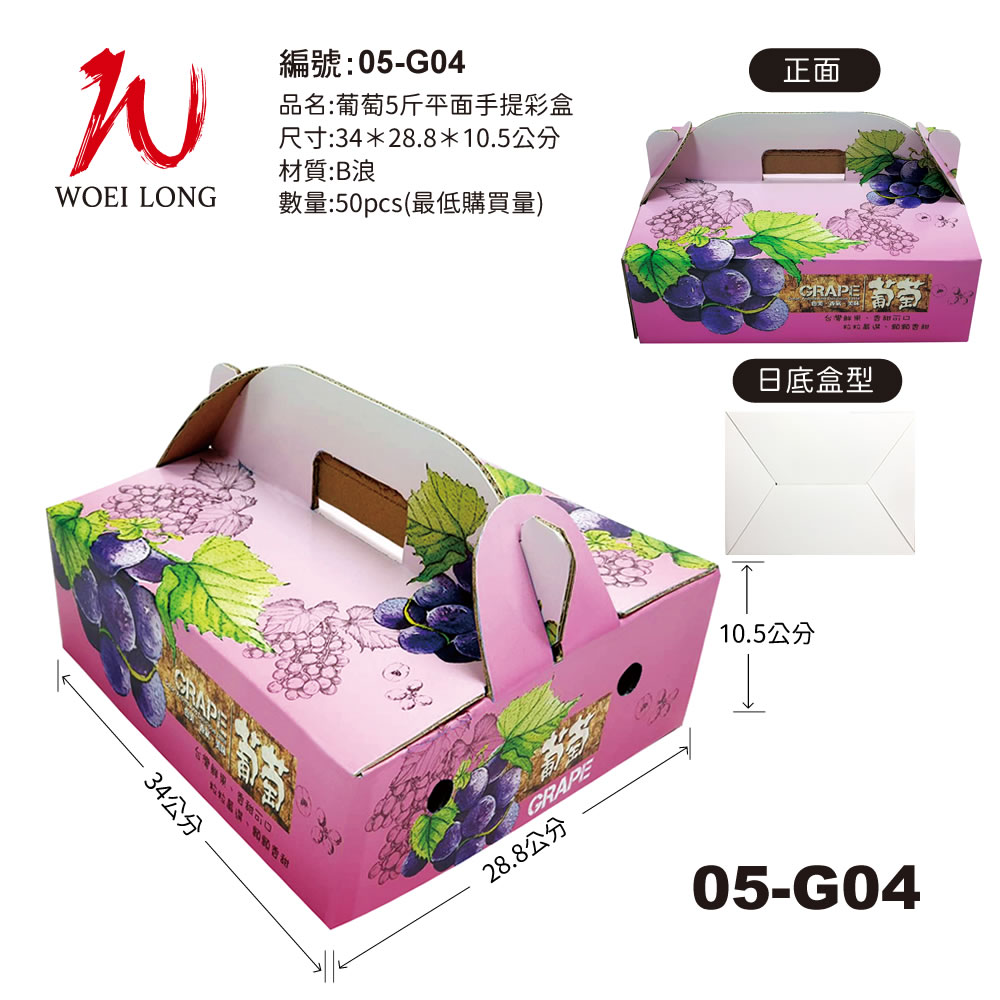 葡萄5斤平面手提彩盒-粉色 05-G04